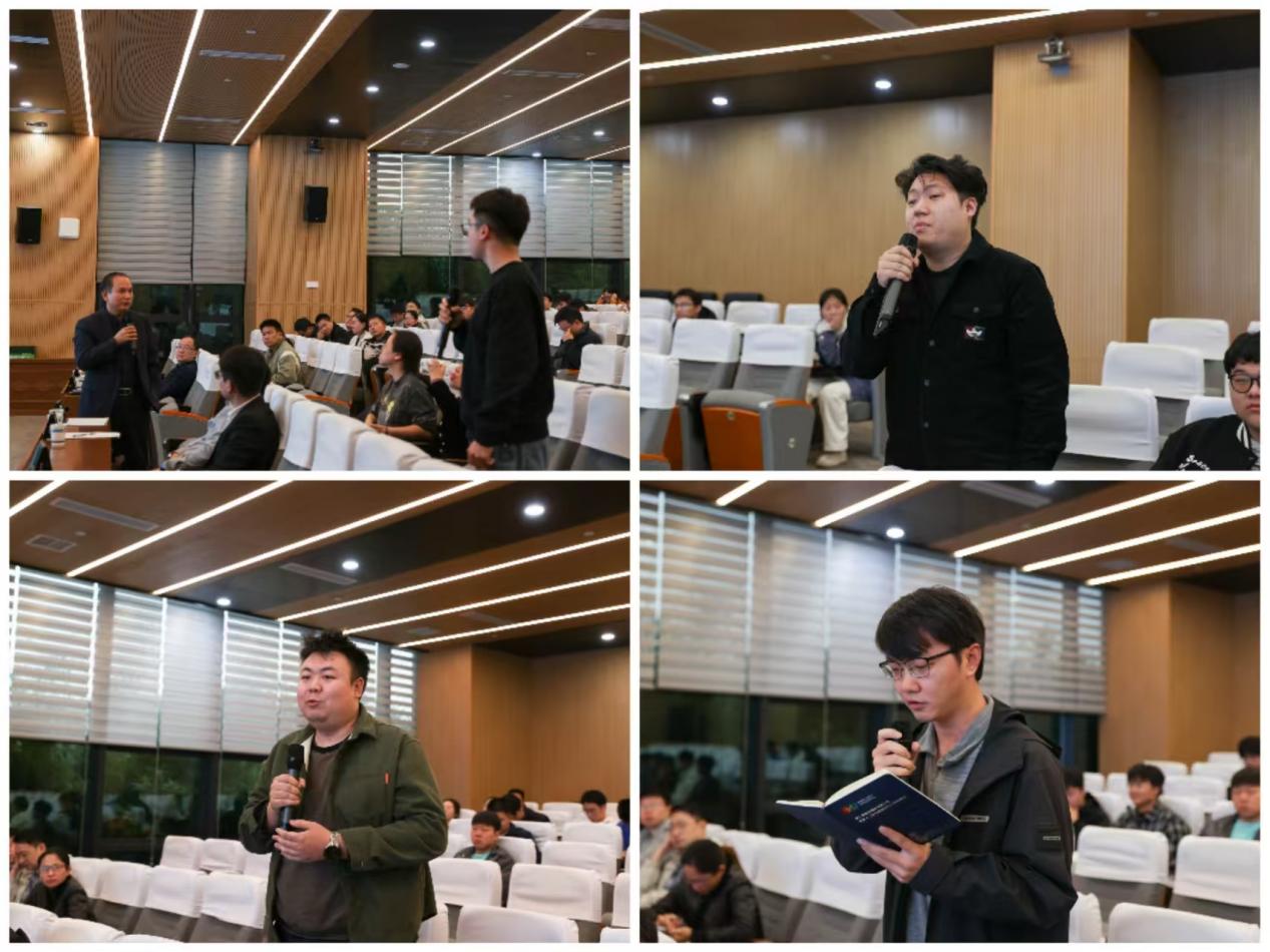 在互动环节,现场气氛热烈。贾永胜教授在互动中引导讨论走向深入,从炸药爆轰机理到爆破效果评估,为破解行业“卡脖子”难题提供了新视角。来自人工智能、智能制造、环境与健康、光电材料等学院的师生,与三位报告专家就智能算法在炸药配方设计中的应用、非炸药破岩装备的研发、爆破有害效应的精准监测与治理等话题进行了深入探讨与思维碰撞。与会师生表示,通过跨学科对话,对炸药基础理论有了更深入理解,为后续研究提供了新方向,充分体现了“精细爆破+”平台的学科交叉融合特色。
