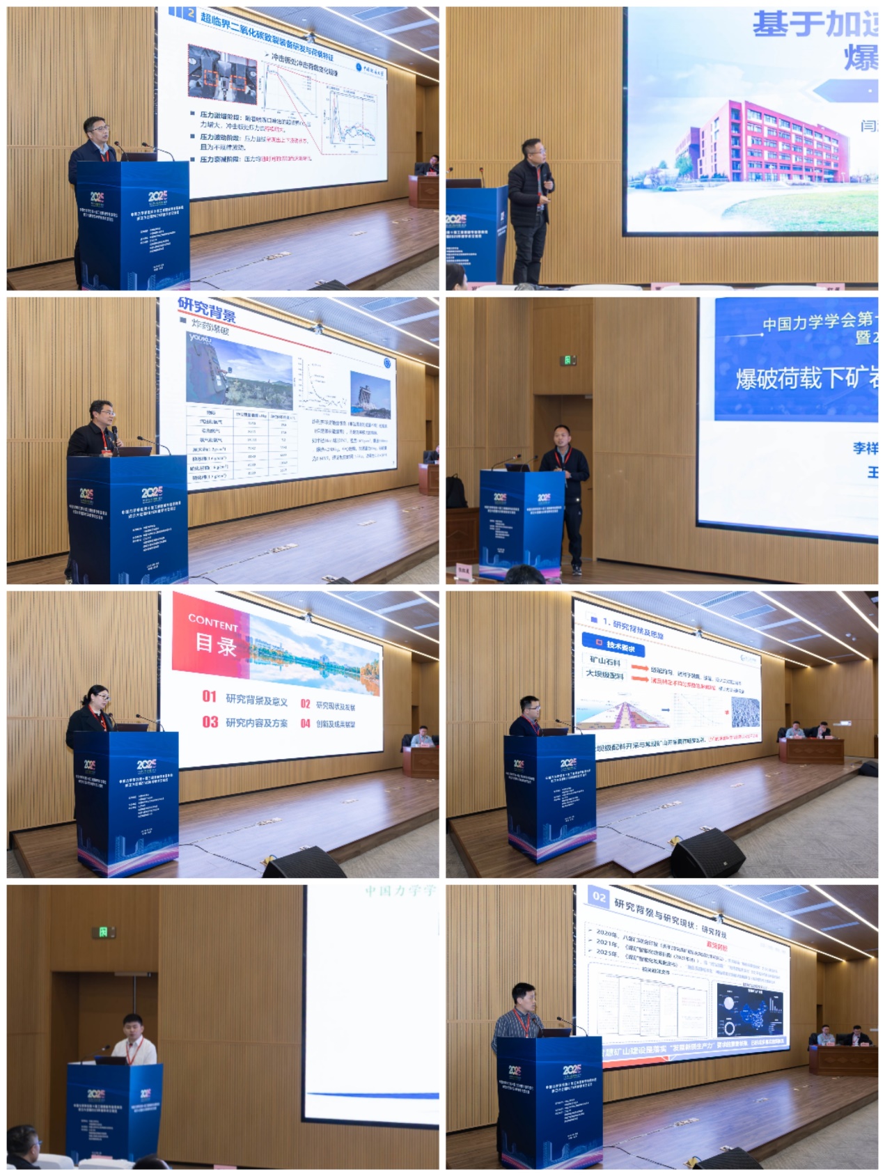 随后,特邀报告阶段,8位学者多维度展示了工程爆破领域的最新科技成果。罗学东教授介绍了超临界相变破岩裂纹的智能识别技术;闫鸿浩教授分享了关于爆破振动控制研究的最新进展与成果;马宏昊教授探讨了生物质的爆炸特性;王建国教授深度剖析了爆破过程中的能耗规律;李琳娜教授提出了工程爆破数字孪生建模的创新方案;胡英国正高级工程师系统介绍了水工堆石坝级配料爆破的理论体系;孙鹏昌研究员针对隧道爆破振动控制难题,提出了具有针对性的分源解析方法;郝亚飞正高级工程师介绍了钻孔近场岩体性质的快速识别方法,为现场大规模作业提供了理论支撑。